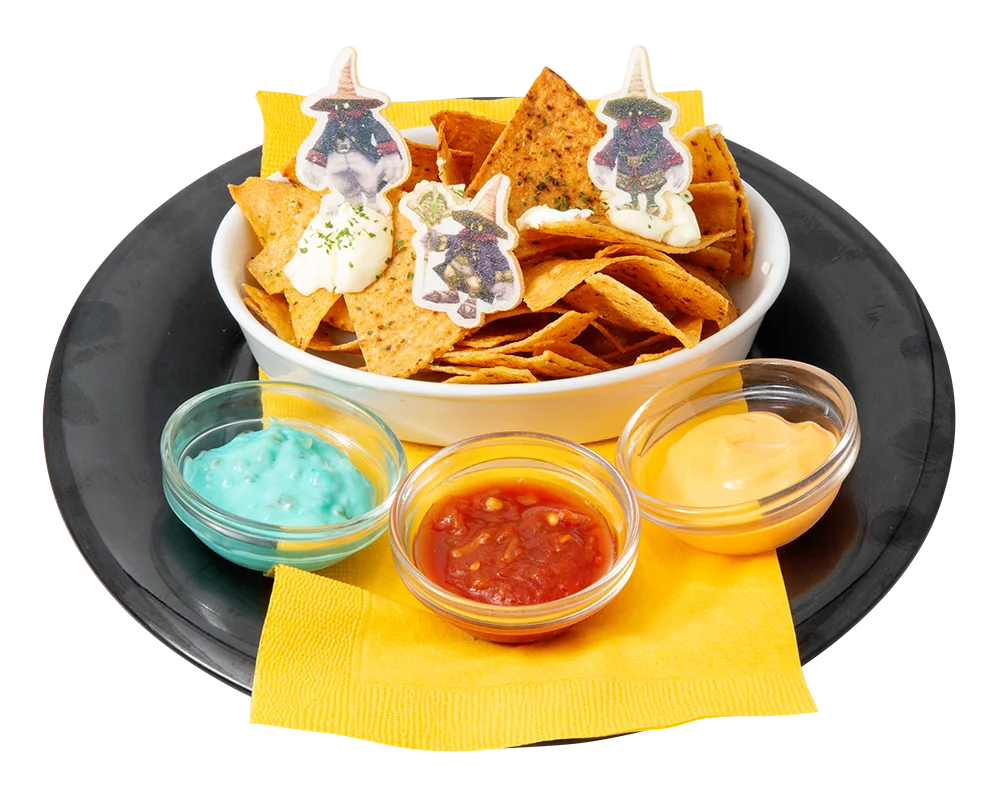 - 黒魔道士のナチョス ¥1,100(税込) — 帽子をイメージしたナチョス、3種のソース(ファイア/ブリザド/サンダー)で提供