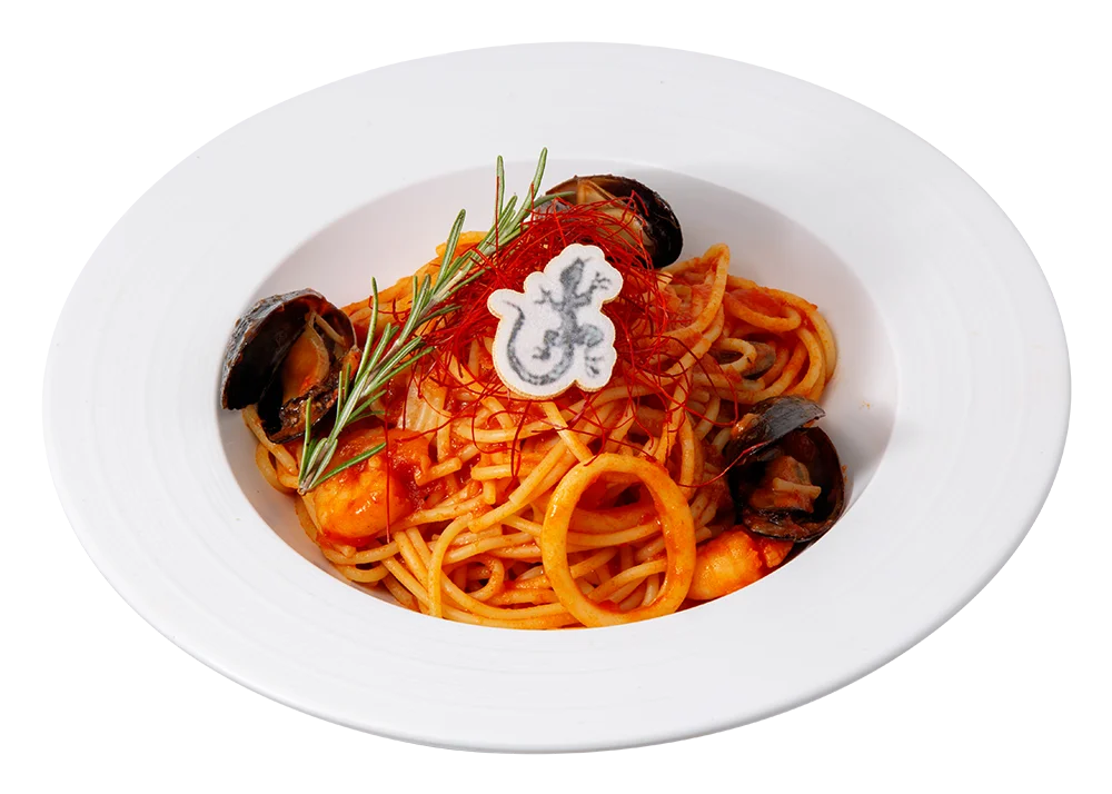 - 焔色のサラマンダーペスカトーレ ¥1,430(税込) — 赤髪をモチーフに糸唐辛子とローズマリーを使用したペスカトーレ