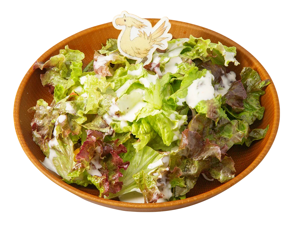 - ここ掘れ!チョコボグリーンサラダ ¥1,100(税込) — ミニゲーム要素を再現したサラダ
