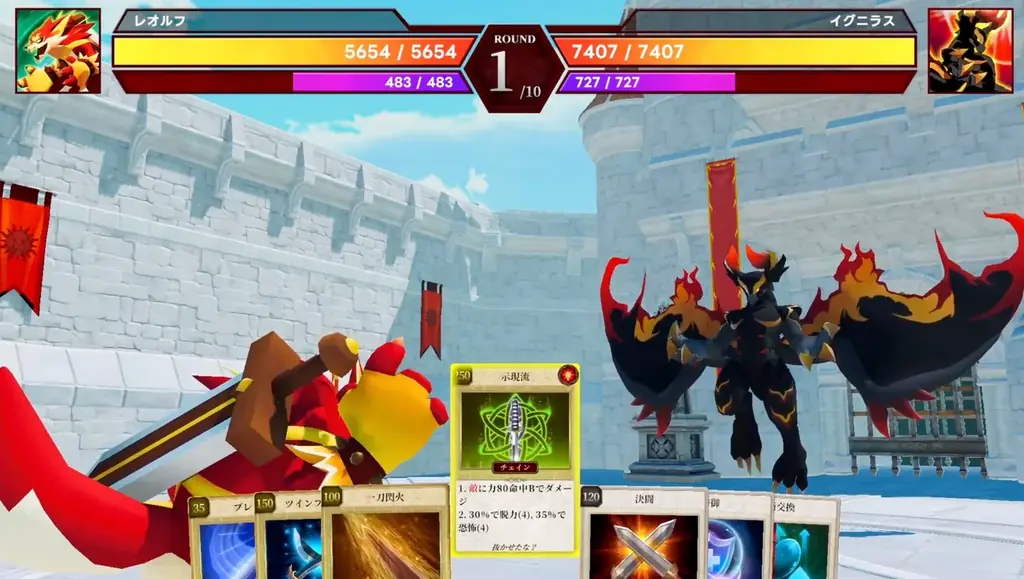 戦闘はカードを選んで行う方式を採用しており、直感的でありながら奥深い駆け引きが求められます。カードの選択とタイミング、相手の出方を見極める戦略が勝敗を分けます。