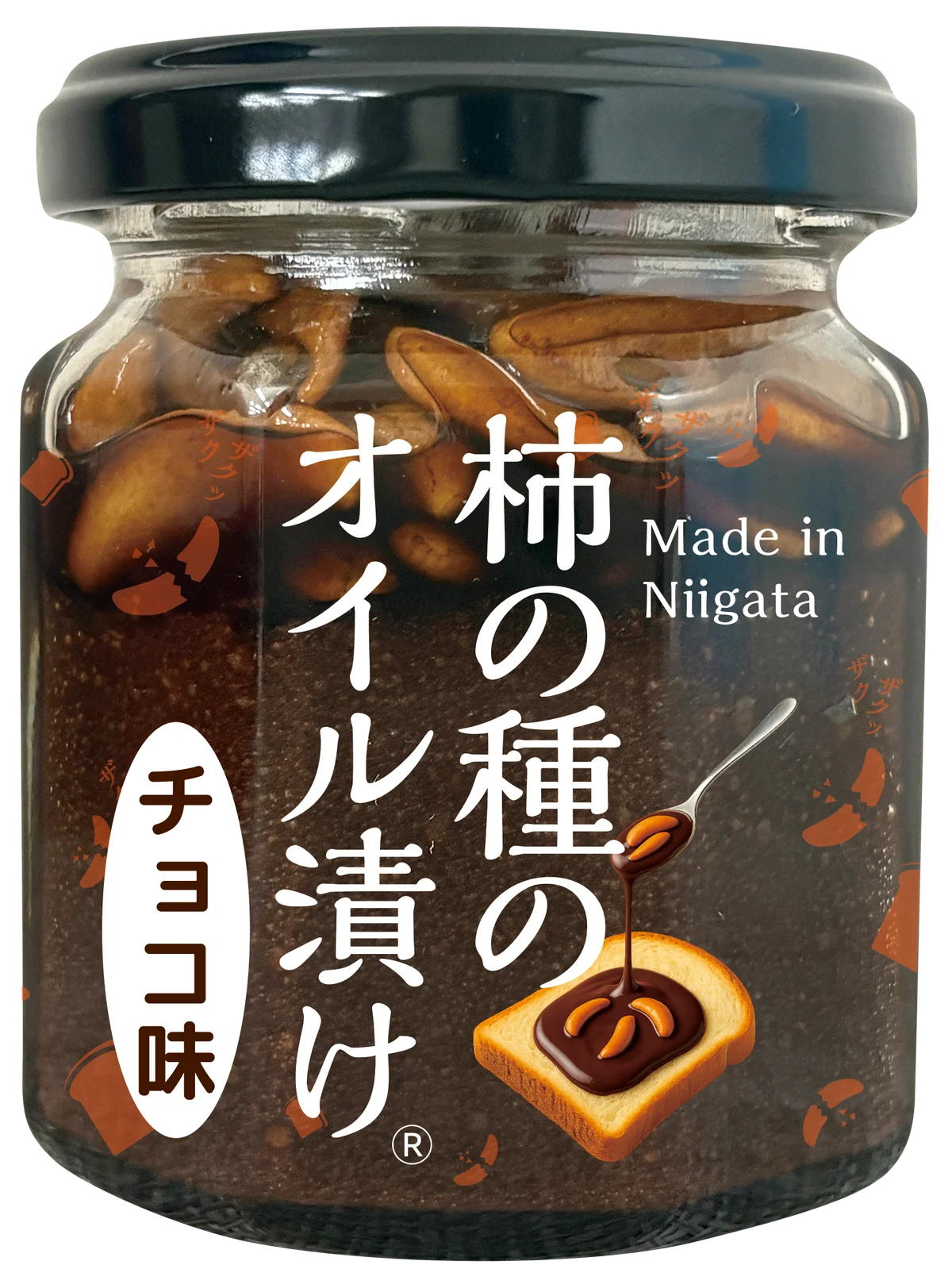 - コラボの出発点:阿部幸製菓の新商品「パンにのせる柿の種のオイル漬け チョコ味」