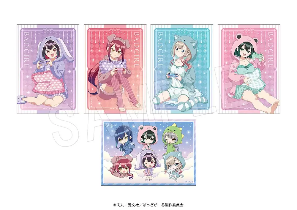 『ばっどがーる』アニマルルームウェアver.として展開される各種商品は、描き下ろしイラストを中心に構成されています。トレーディング商品やセット販売も含まれ、コレクション性の高いラインナップです。
