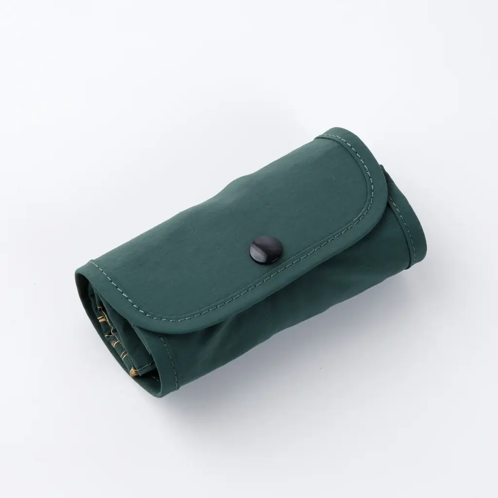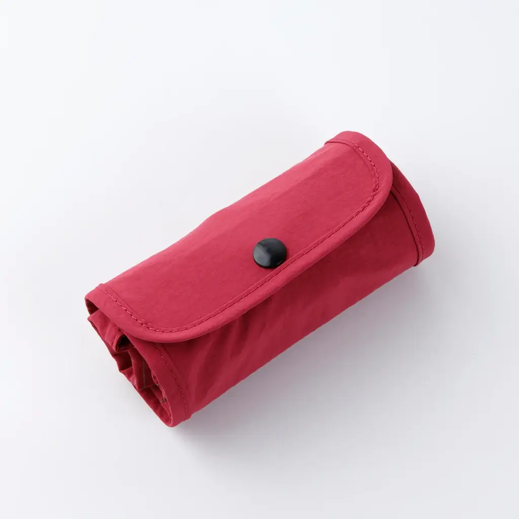 『スモールショッパー』は、くるっと丸めて手のひらサイズに収納できることが最大の特徴です。使用しないときはバッグやポケットの中でも場所を取らず、必要なときに素早く取り出せる仕様となっています。