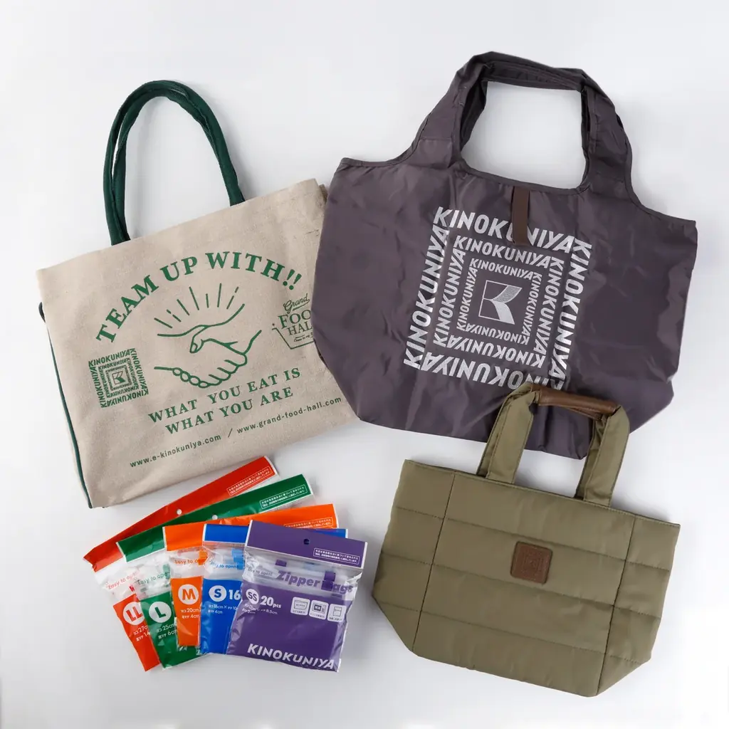 - 主な内容:グランドフードホール コラボバッグM、キルティングトート、まとまる保冷バッグ、その他エコバッグ類