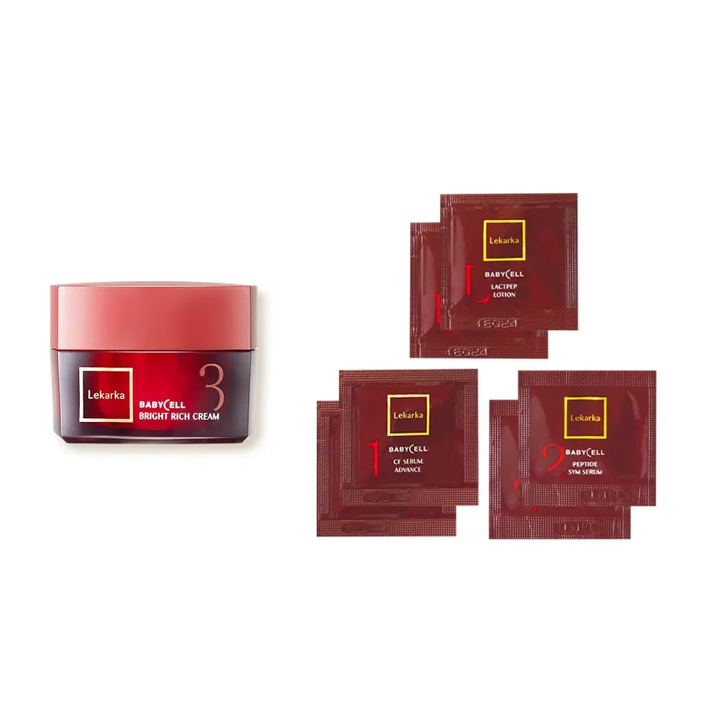 - 同梱内容:ブライトリッチクリーム(30g)+ラクトペプローション(1mL)2包+CFセラムアドバンス(1mL)2包+ペプタイドシムセラム(1mL)2包