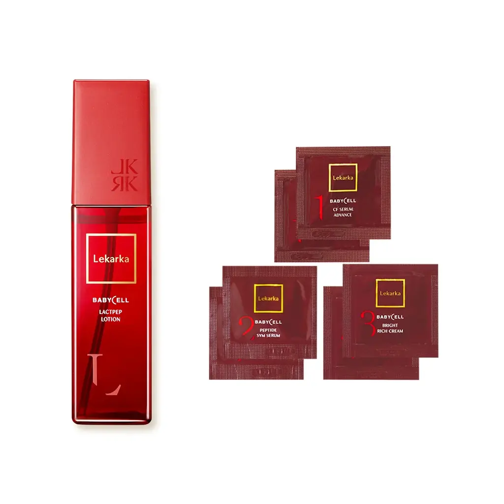 | BABYCELLトライアルキット | 販売期間:2025/12/12 12:00〜常時販売 価格:6,050円(税込) 同梱:ラクトペプローション 12mL、CFセラムアドバンス 1mL×4包、ペプタイドシムセラム 1mL×4包、ブライトリッチクリーム 3g |