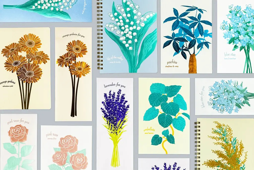 また、〈Hakuoshi Botanical〉シリーズの新作として、ポストカード、B6リングノート、レターセットが追加されます。既存柄(バラ、ウンベラータ、パキラ、ブルースター、ミモザ)に加えて新柄として「スズラン」「ガーベラ」「ラベンダー」が追加されます。価格はポストカードが各330円、B6リングノート各1,650円、レターセット各770円です。