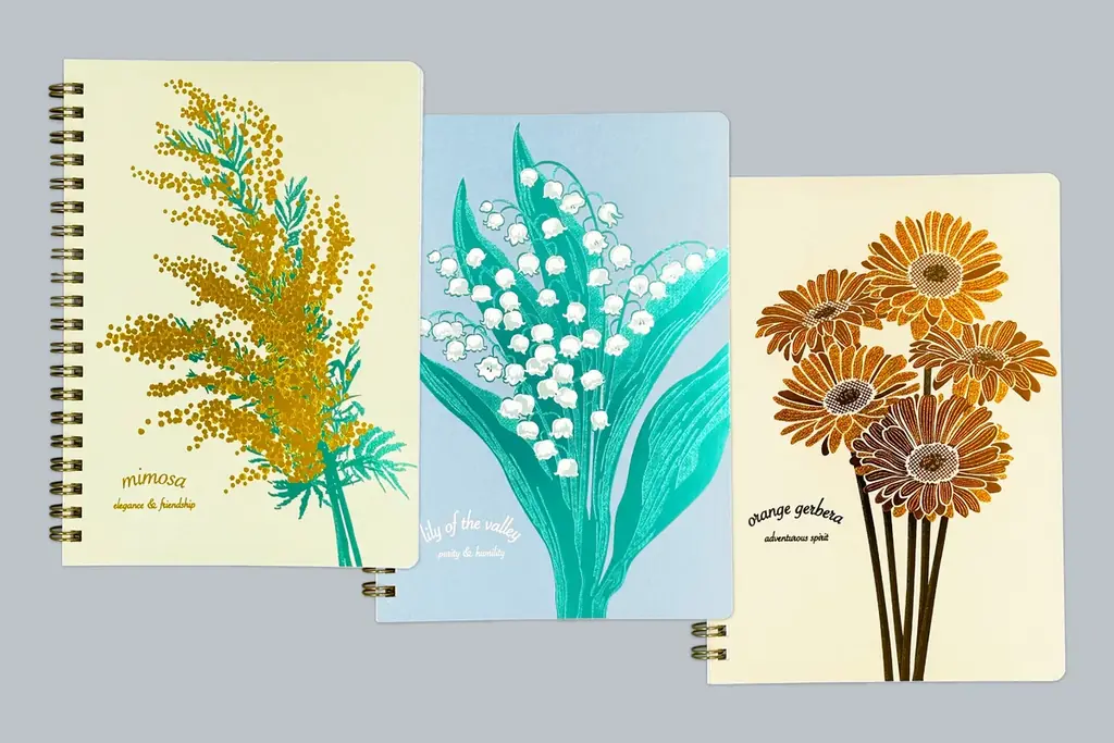 - B6リングノート:3種(パキラ、スズラン、ラベンダー/ガーベラ表記あり) 各1,650円(本文 140ページ 5mm方眼)
