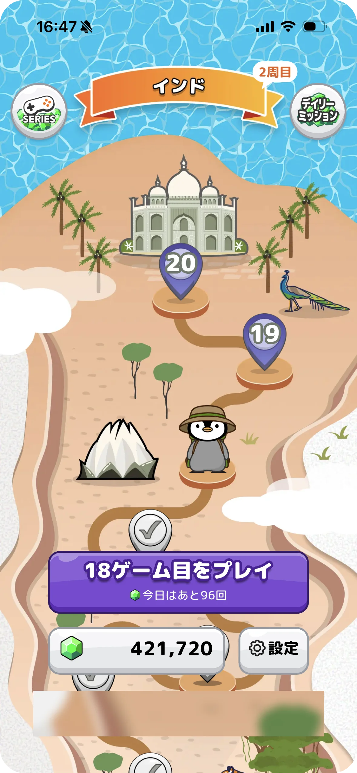 全エリアをクリアすると世界一周達成となり、2周目が始まるため、長期的に遊べる設計です。エリアを進めるごとに達成感が得られる構成になっています。