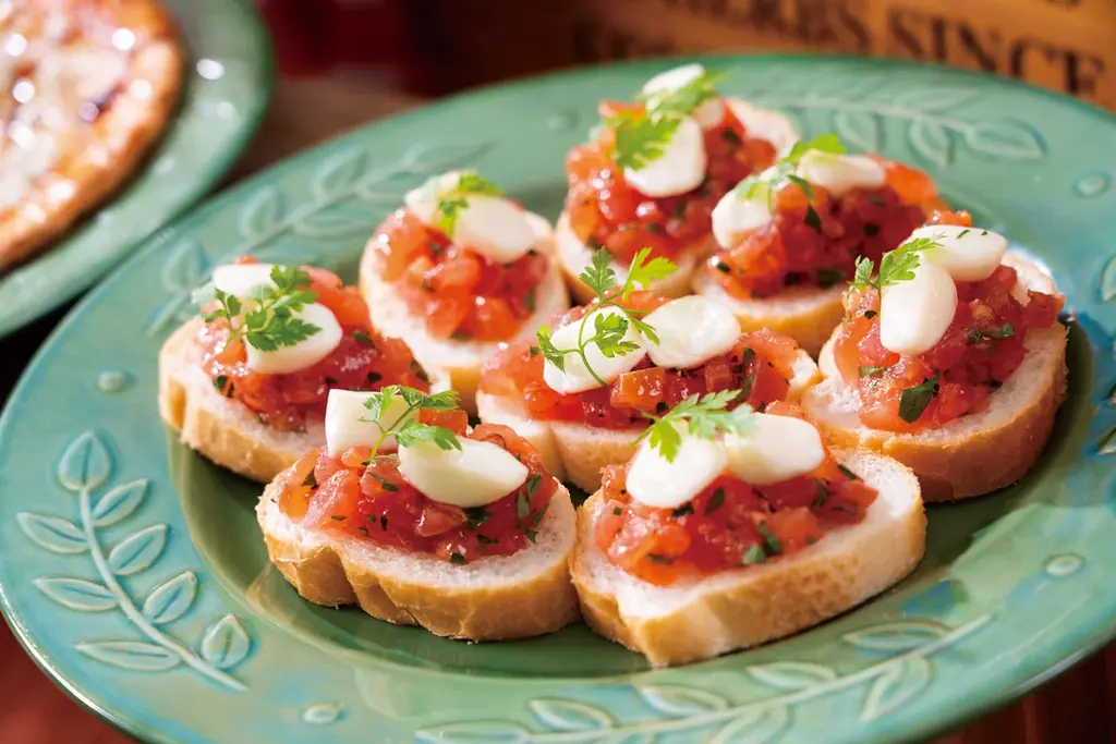- トマトとモッツァレラチーズのブルスケッタ(トマトとハーブの香り)