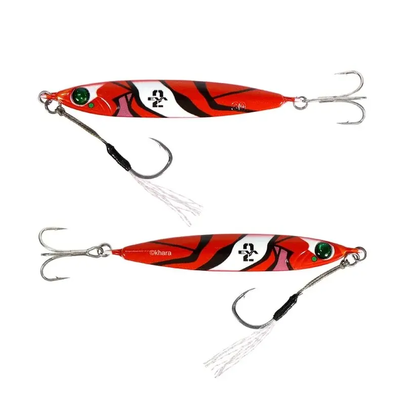 このメタルジグは株式会社ジーク(Zeake)の人気モデル「Rサーディン(リアルサーディン)」をベースに、EVANGELION×DRESSの限定コラボカラーで生産されたモデルです。左右対称のセンター後方ウェイトバランスにより、安定した飛距離を確保します。