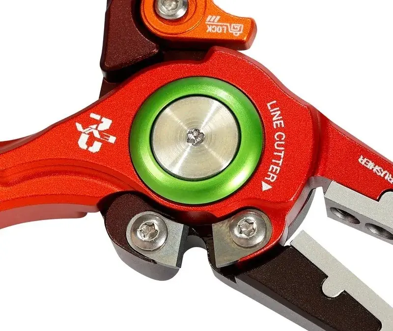 アルミ製の高機能プライヤーは赤とオレンジのコントラストで2号機を象徴するデザインです。ロングノーズ形状により針外しやフック交換、ラインカットなど1本で対応できるプロユース仕様です。