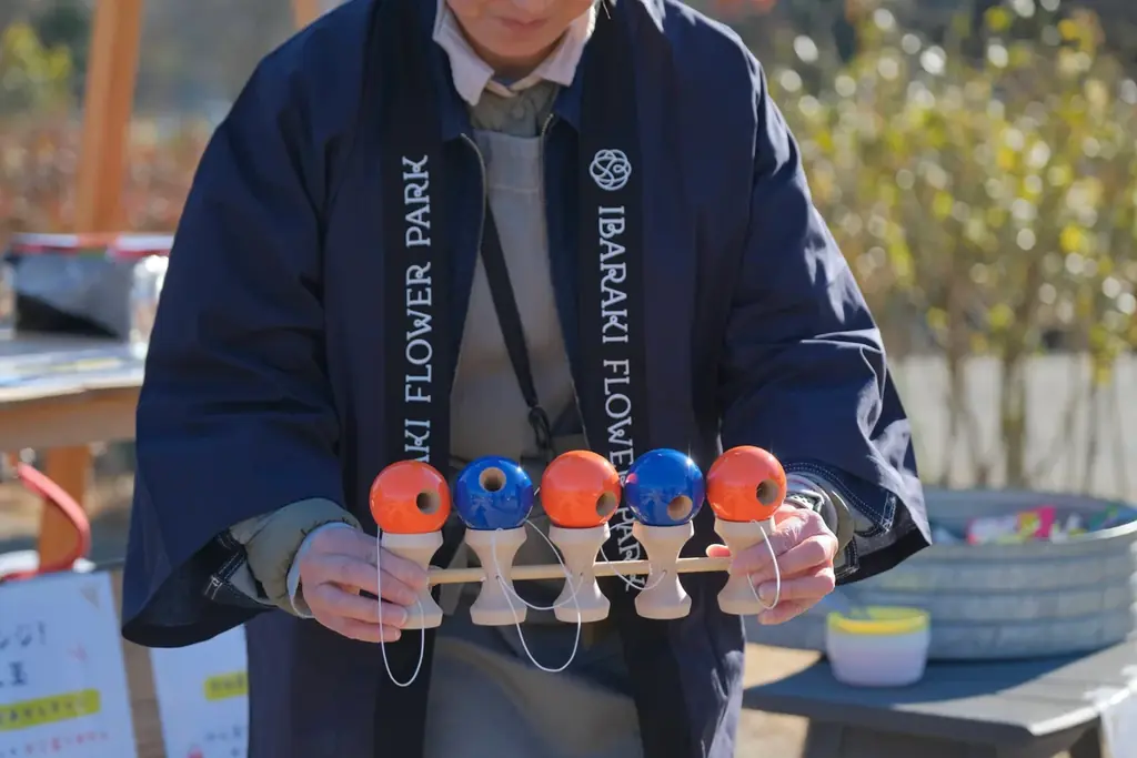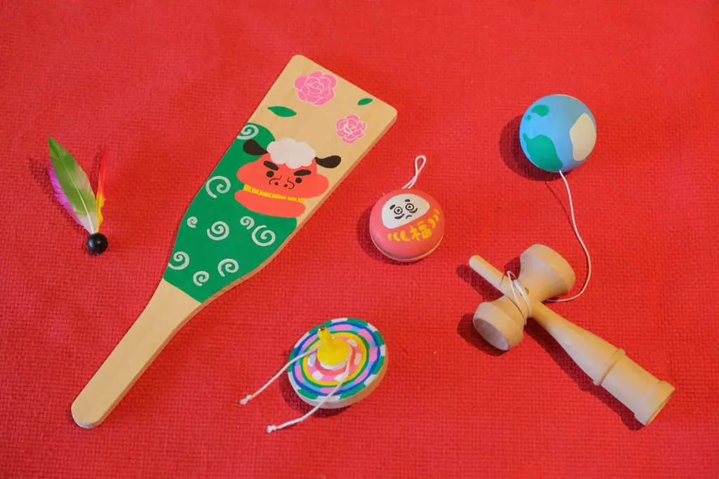 - お正月に合わせたけん玉や羽子板などへ絵付けをしてオリジナルの遊具を作成できます。料金は、お絵描きけん玉 1,200円(税込)、お絵描き羽子板 1,300円(税込)、お絵描きコマ 600円(税込)、お絵描きヨーヨー 600円(税込)。