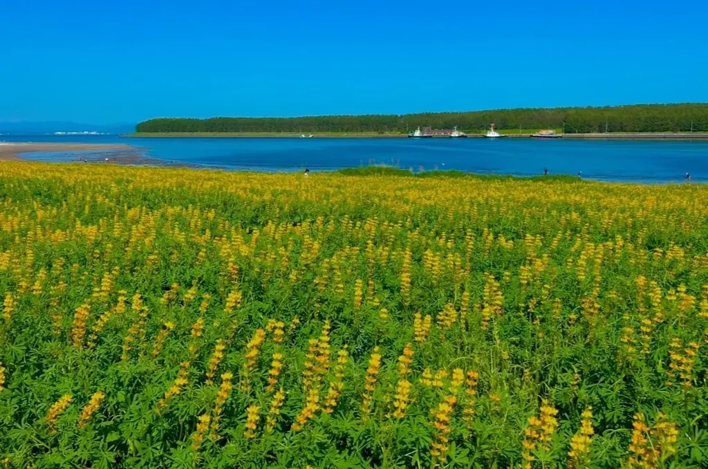 町の花にもなっているルーピン(ルピナス)が一面に咲くスポットで、南北約1キロにおよぶルーピン畑が柏原海岸近くに広がります。例年3月下旬から4月中旬にかけて約100万本のルーピンが咲き誇り、鮮やかな黄色で景観を彩ります。