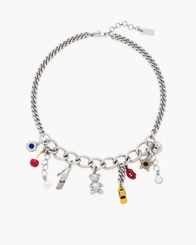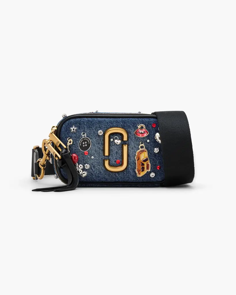 今回新登場したザ トリンケット チャーム シリーズは、クラシックなデニム素材をベースに、マーク ジェイコブスからインスパイアされたトリンケットチャームがあしらわれています。チャームにはドミノ、キキ ヒール、トートバッグ、タクシーなどのモチーフが用いられ、遊び心とブランドの世界観が同居するデザインです。