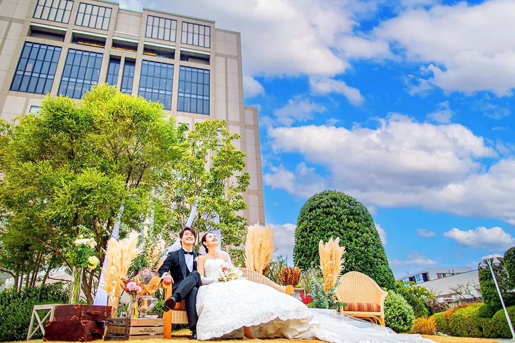 | 主な演出 | ガーデンに100束ディスプレイ、ゲスト入場、挙式後オプション演出(フラワーシャワー、バルーンリリース)、全員フォト(ドローン可)、新郎新婦から花束プレゼント |