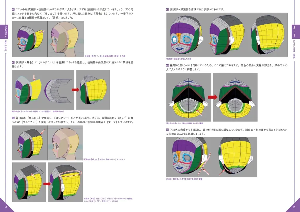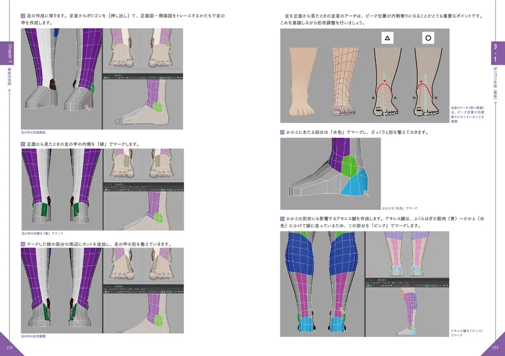 色分けによる部位の視認性向上は、ポリゴンフローやトポロジー設計、可動部位の表現に直結します。本書では色分けを用いた観察法、参照の取り方、解剖学的な注目点を実務的に解説しています。