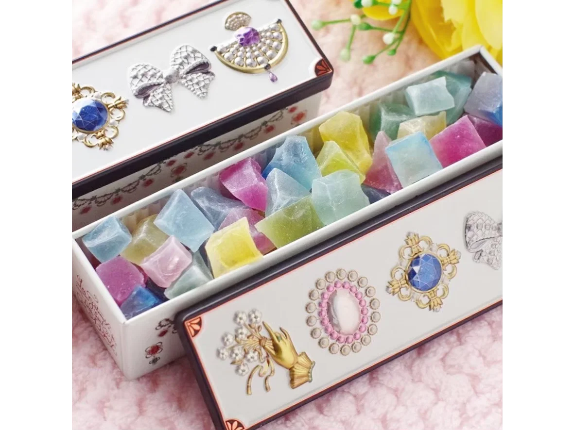 - <魔法の琥珀糖>白の宝石缶 1缶(90g) 2,214円。人気のプレーンフレーバーを宝石缶に詰めた商品。