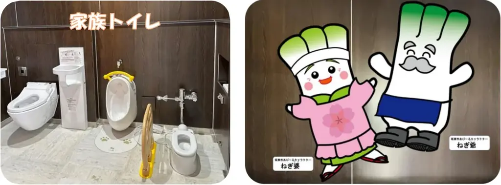 また、坂東市との連携により、同市のキャラクター「ねぎ爺」「ねぎ婆」を壁面に配置して地域のアイデンティティを表現しています。これらの要素は休憩時に地域への関心を促すための演出として位置付けられています。