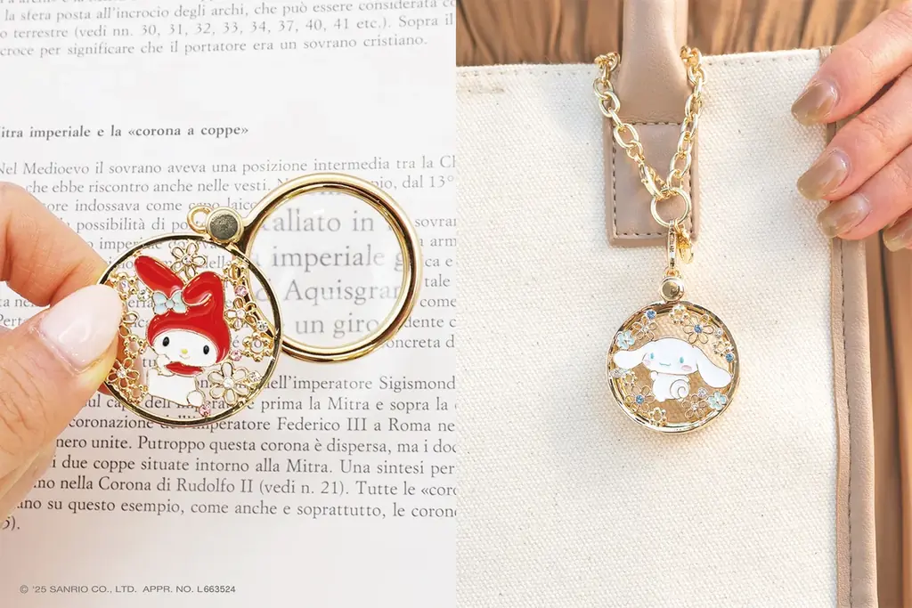 | おめかしルーペ サンリオキャラクターズ | 3,960円 | 全長140mm(チェーン含む)× 幅35mm × 厚さ12mm | 34 g | 合金、真鍮、樹脂、鉄、ガラス | バッグチャーム兼用のスライドルーペ、倍率3倍、透かし模様のデザイン | 4種類 |