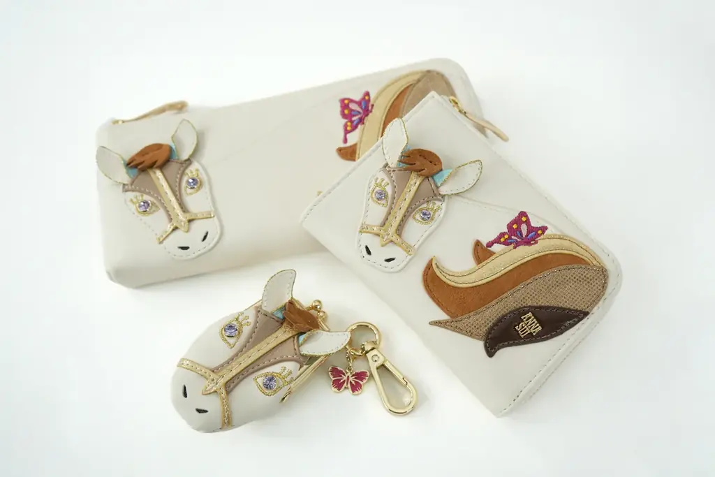 具体的には、馬の顔立ちに温かみのある表情を採用し、蝶のモチーフはアクセントとして要所に配置。これにより「幸運を呼び込む」というイメージを視覚的に表現しています。機能面では日常使いに適した仕様が想定され、財布やケースは普段使いからギフトまで幅広く対応するデザインです。
