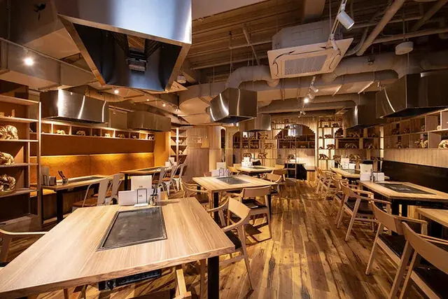 KIBORI は「創業50年の北海道ダイニング監修」というバックボーンを持ち、北海道産食材を使ったB級グルメアレンジの“北海もんじゃ”と、北海道産和牛や野菜を用いる豪快な“鉄板焼き”を2大看板としています。都内に居ながらにして北海道らしさを感じられる店作りが意図されており、内装には日本中から集められた1,000頭の木彫りの熊が並べられていることも特徴です。