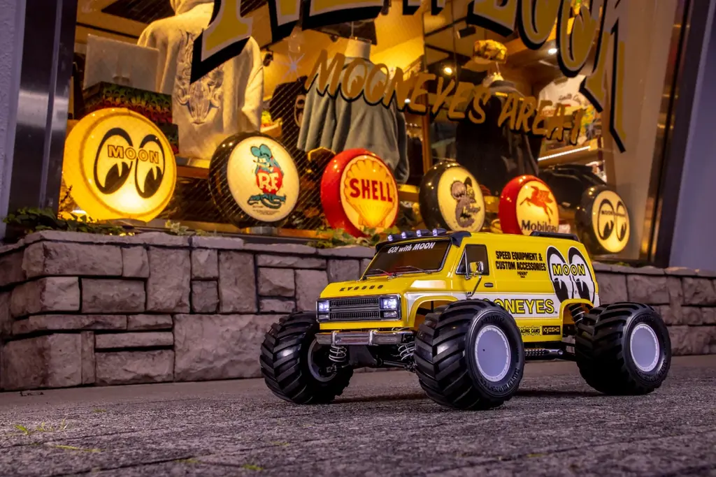プレスリリース本文では「走り出すアメリカン・スタイル! MOONEYES × 京商 、夢のコラボRCカーがついに登場!」と銘打たれており、「是非、こちらの動画をご覧ください。」との案内もある。製品は完成済みのレディセット(工場完成シャシー)として供給され、別途走行用バッテリーや充電器、送信機用電池を用意すればすぐに走行可能となる。