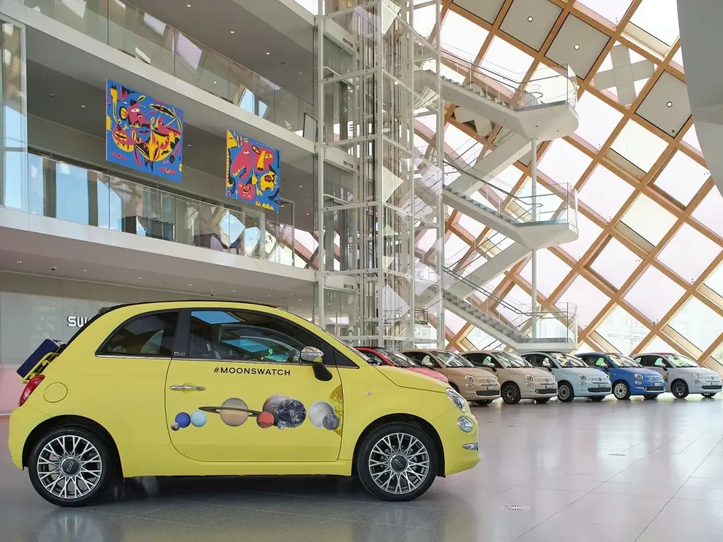 - 展示・販売の演出:FIAT 500にMoonSwatchを載せて巡回