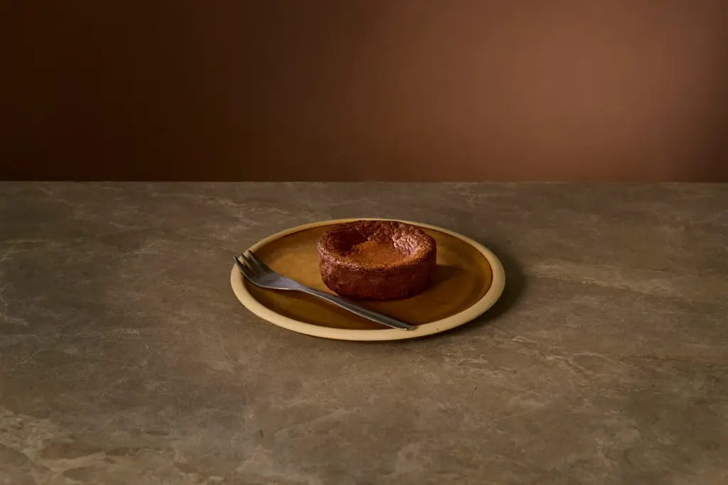 ブルーボトルの定番「トンカチーズケーキ」をベースに、カカオ70%チョコレートを贅沢に使用したLOVE DAY限定フレーバー。開発はJérôme Quilbeufシェフ(パリでの料理学び、Sant Pauヘッドシェフ経験)と共同で行われ、トンカ豆が全体をまとめるエレガントな仕上がりです。店内提供のみ。
