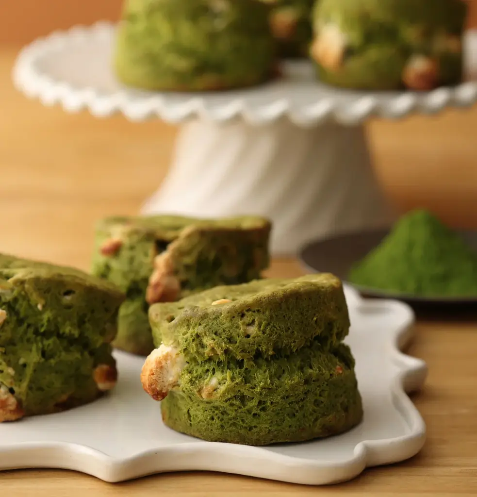 宇治抹茶を生地に練り込み、ホワイトチョコのまろやかな甘みでバランスをとった商品です。抹茶のほろ苦さとホワイトチョコが織りなす味のコントラストは、日本茶と合わせることを想定した和のアフタヌーンスイーツとしての側面を持っています。