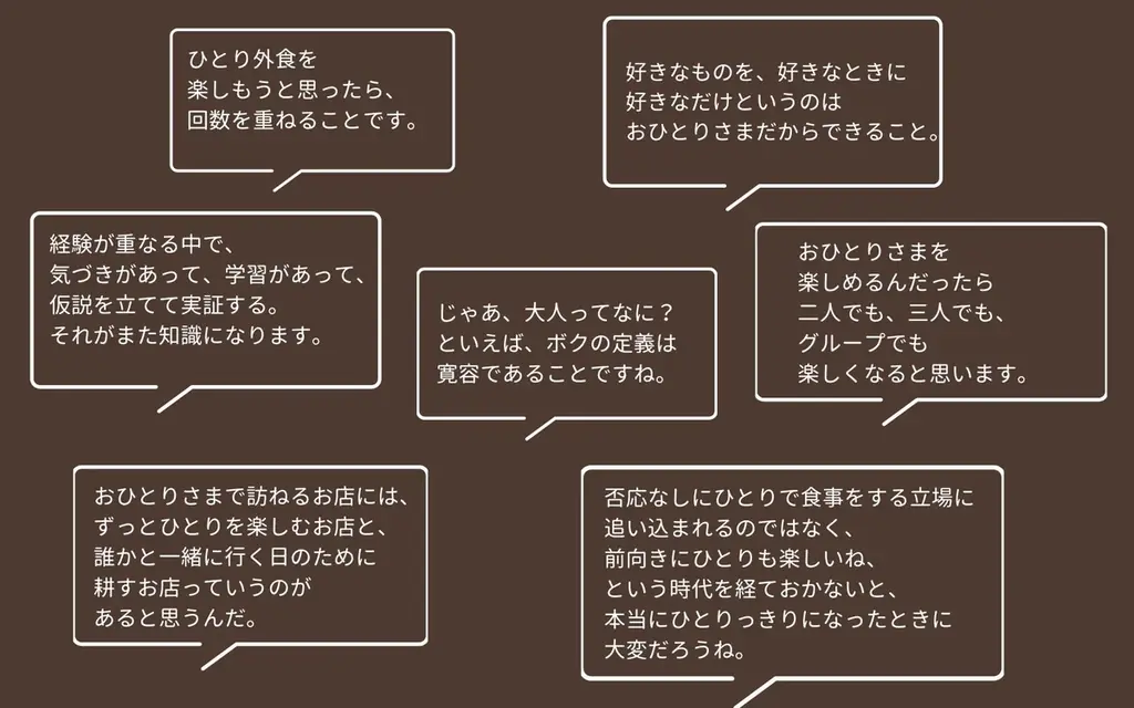 サカキ氏は毎日2軒以上、年間およそ1000回の外食を重ねるという実践者でもあります。本書はその経験をもとに「おひとりさまフレンドリー」な飲食店を厳選し、読者の今日の気分に応じて使い分けられるように編まれています。