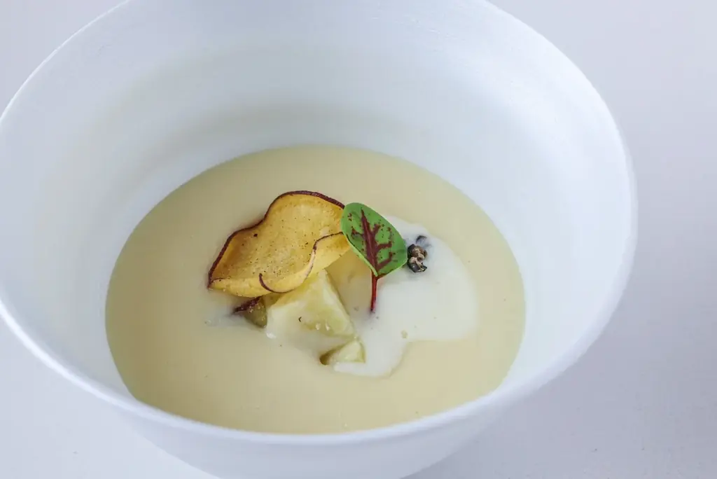 - Soupe [甘味]:サツマイモ3つのテクスチャー、マスカルポーネクリームと東京蜂蜜、カンポットペッパーのアクセント