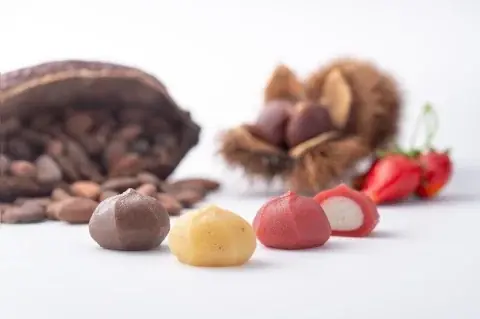 - カカオ(チョコ)を用いた餅菓子。和のあんと洋の素材を組み合わせた和洋折衷の味わいを特徴とします。