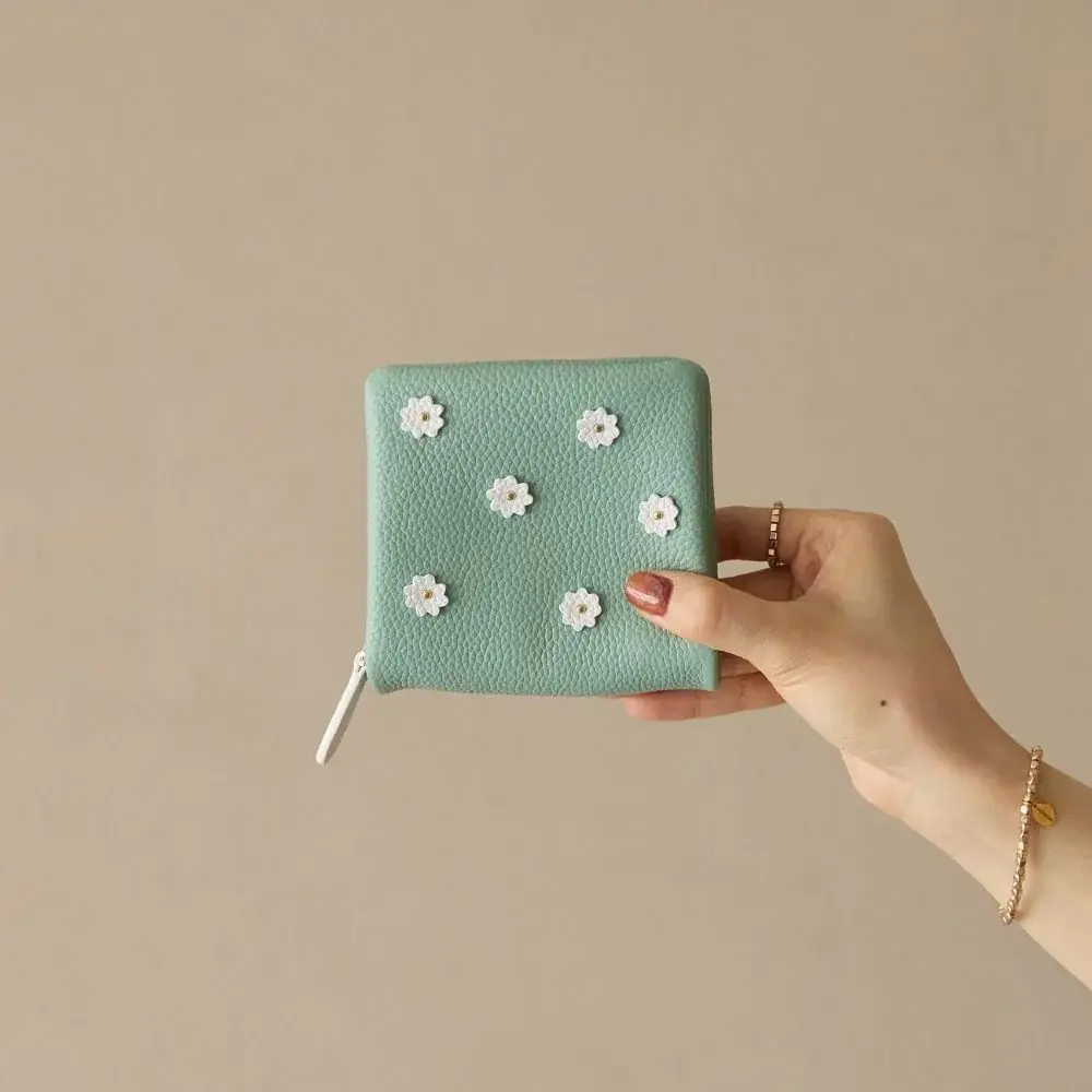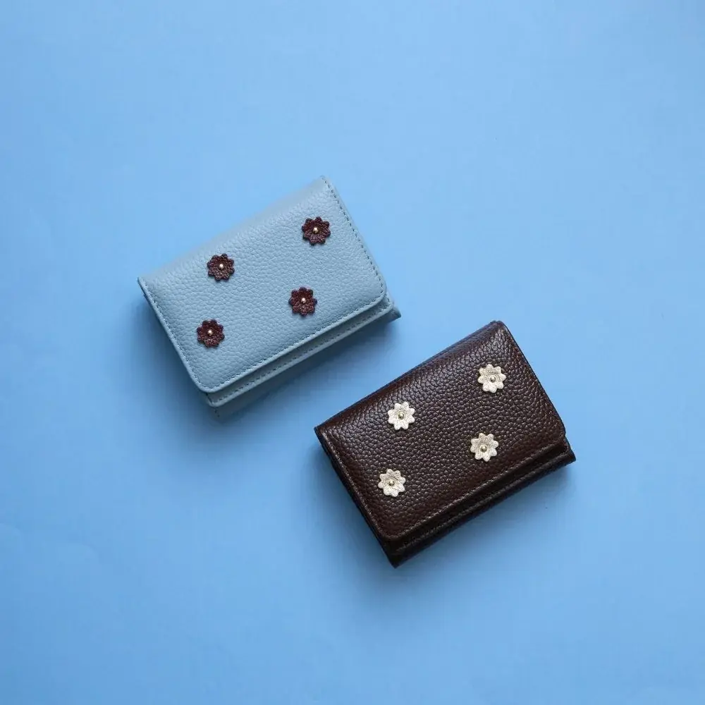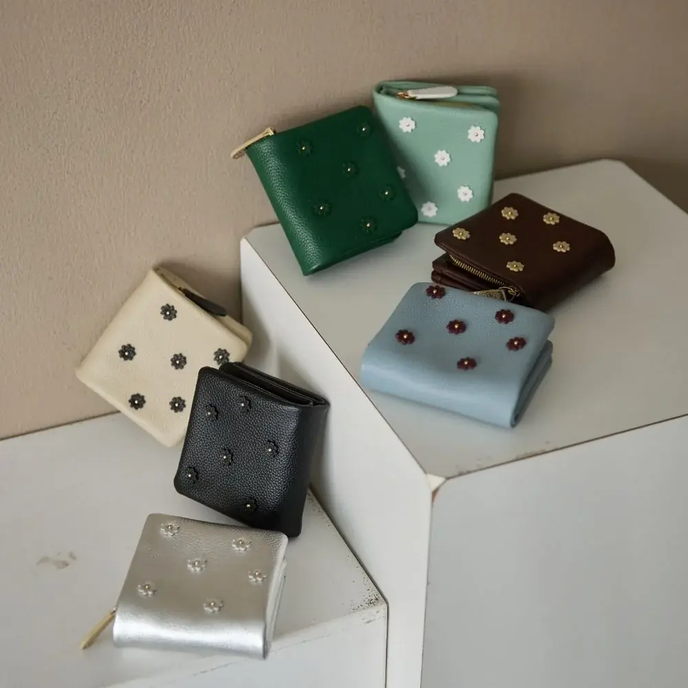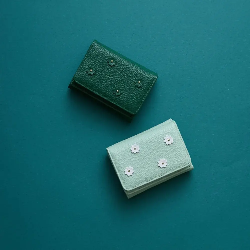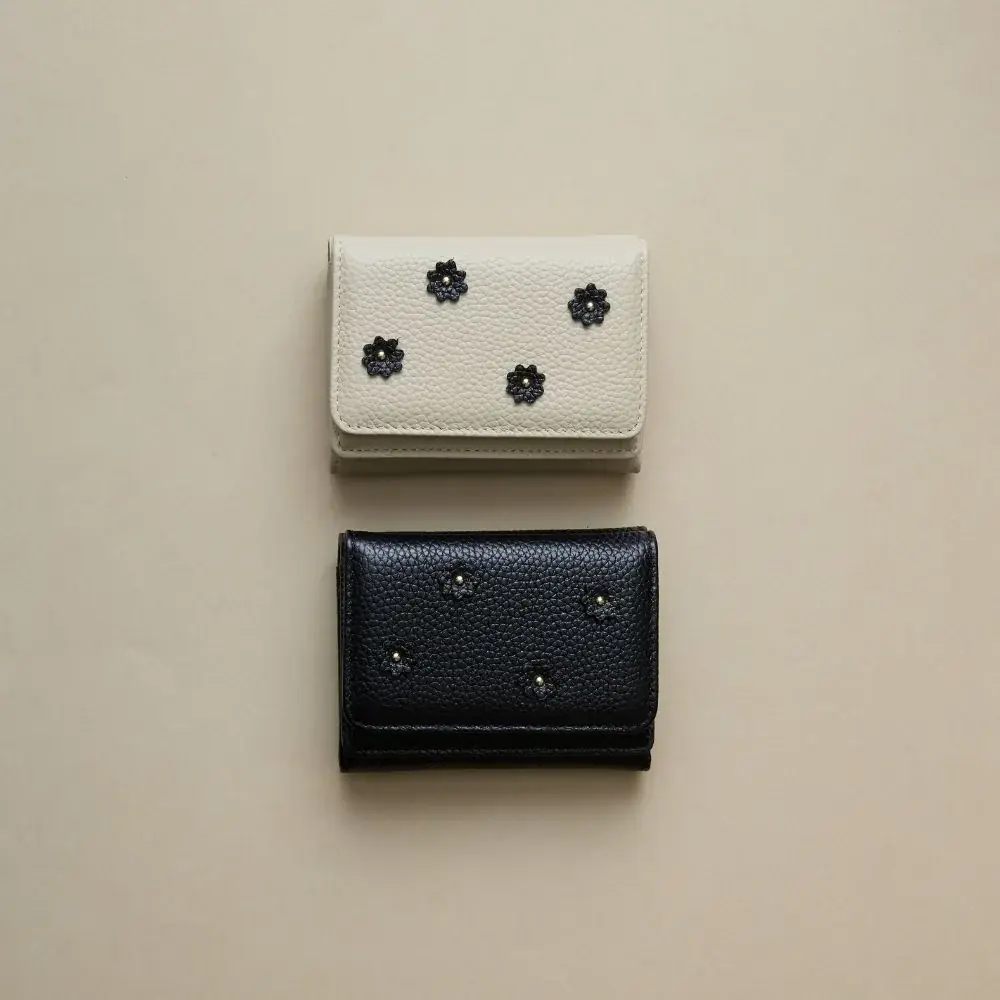可憐なフラワーモチーフを小ぶりなサイズに落とし込んだミニウォレット。手のひらに収まるサイズ感ながら、カード・小銭・お札を確実に収納できる実用性があります。持つだけで気分が華やぐデザインです。