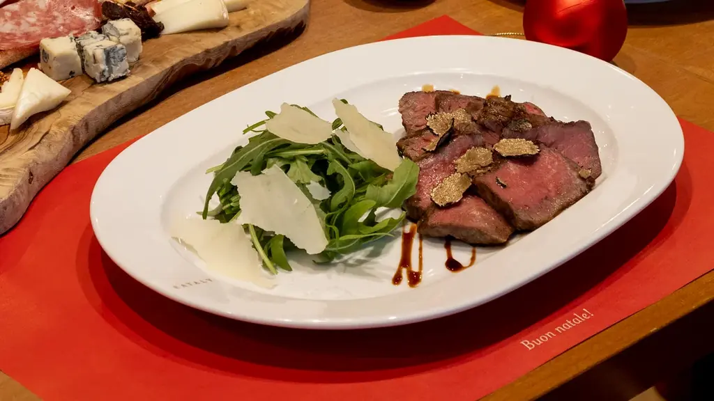 | 湘南ヴィレッジ1F・2F「イータリー」 | 牛肉のタリアータ トリュフがけ | 6,800円 | 1月1日(木・元旦)~1月31日(土)/たっぷりのルーコラとグラナパダーノを添えたローストビーフにトリュフをトッピング |
