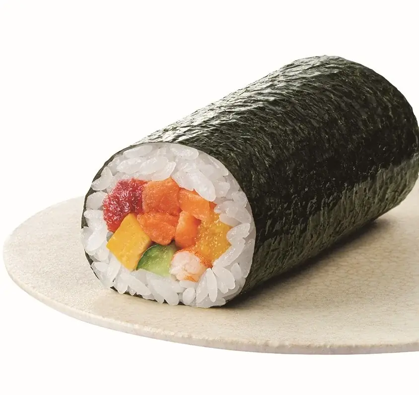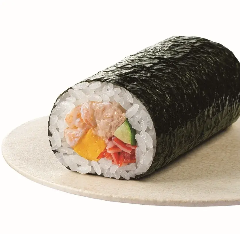 | 海鮮恵方巻 | 556円 / 600円 | 全国 | 長さ9cm×直径4.7cm | 漬けサーモン、まぐろたたき身(本まぐろ6%含む)、海老、玉子焼、きゅうり、数の子 |