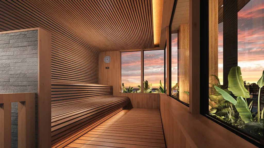 - フィンランド式サウナ:オートロウリュ機能を搭載し、湿度と熱のバランスを自動調整します(約8名がゆったり過ごせる広さ)。