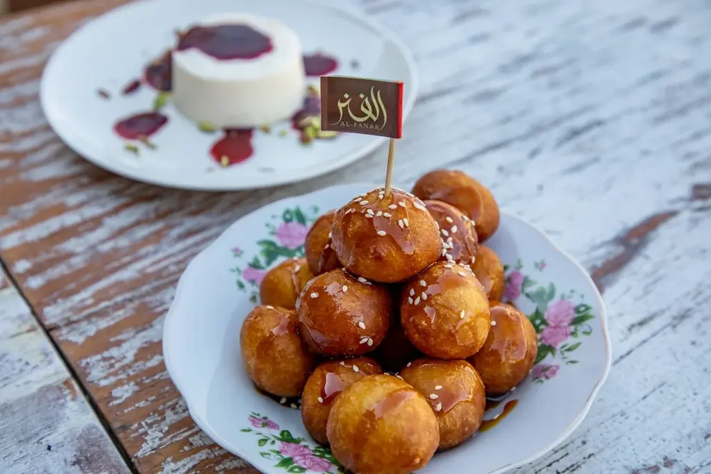 - ルゲイマート(Luqaimat):揚げ団子にデーツシロップを絡め、白ごまを振ったエミラティの代表的スイーツ。ドバイ・フェスティバルシティの「アル・ファナール・レストラン&カフェ」で出来立てを提供。