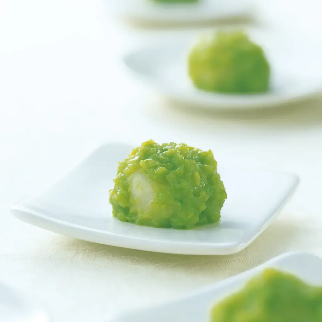 ずんだ餅は厳選された枝豆を独自の配合でブレンドしたずんだ餡を用いた、伝統の味わいです。香り高く深い味わいが特徴で、素材の選択と餡の配合に重点を置いています。