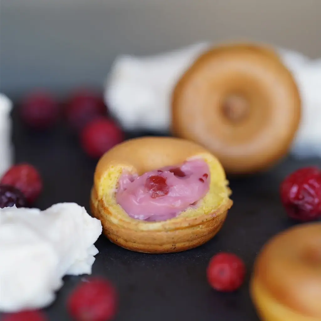 - クランベリーの果実感とクリームチーズのコクを組み合わせた、甘酸っぱさとコクのバランスを持つフルーツクリームを、プレーン生地と紅茶生地で包み焼き上げたもの。さっぱりとした後味が特徴です。