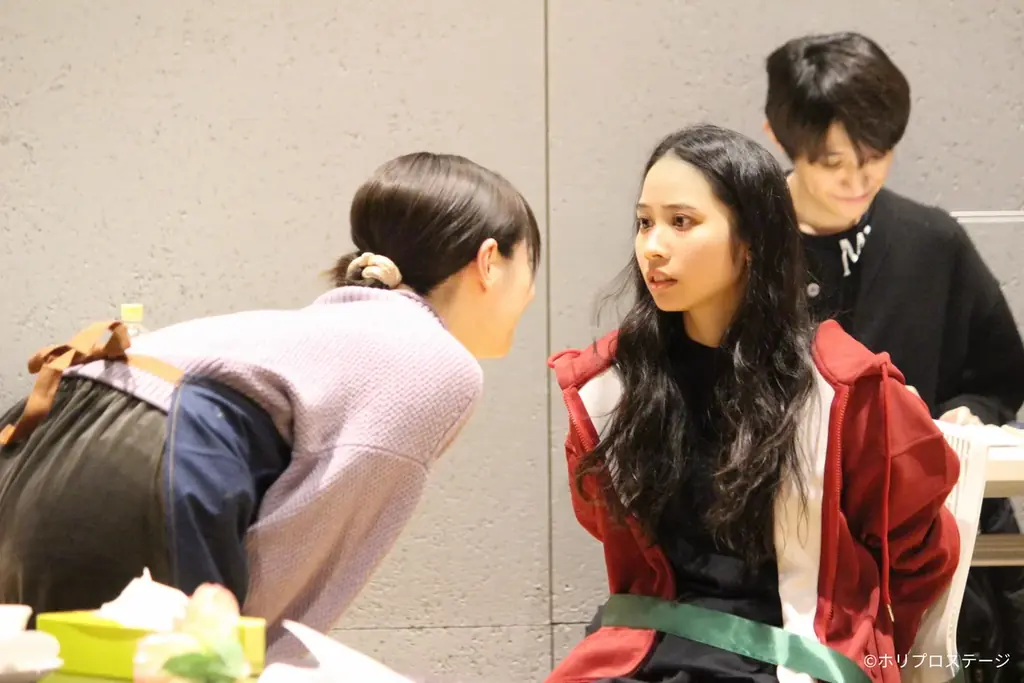 稽古場披露では、二場「再会」と四場「因縁」における重要な転機が演じられ、6年ぶりに再会した双子の姉妹の距離感と、やがて明かされる真実へとつながる伏線が歌と台詞で縫い合わされていた。