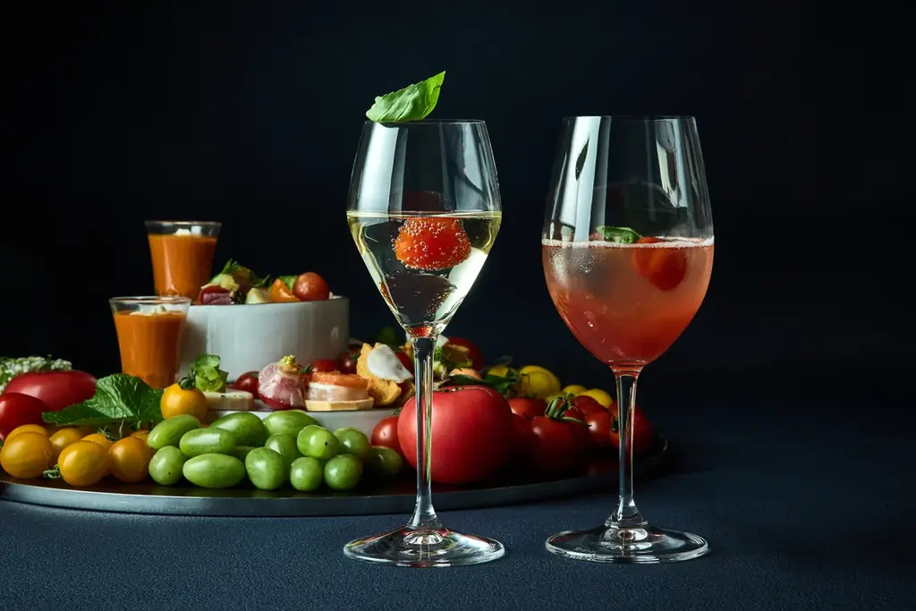 ブランチに合わせるペアリングとして、トマトの余韻を生かすジンベースのカクテルや、ノンアルコールペアリングにはバジルの香りを効かせたさっぱりとした飲み物を用意。ハチミツのほのかな甘みやクランベリーの苦味がアクセントになります。
