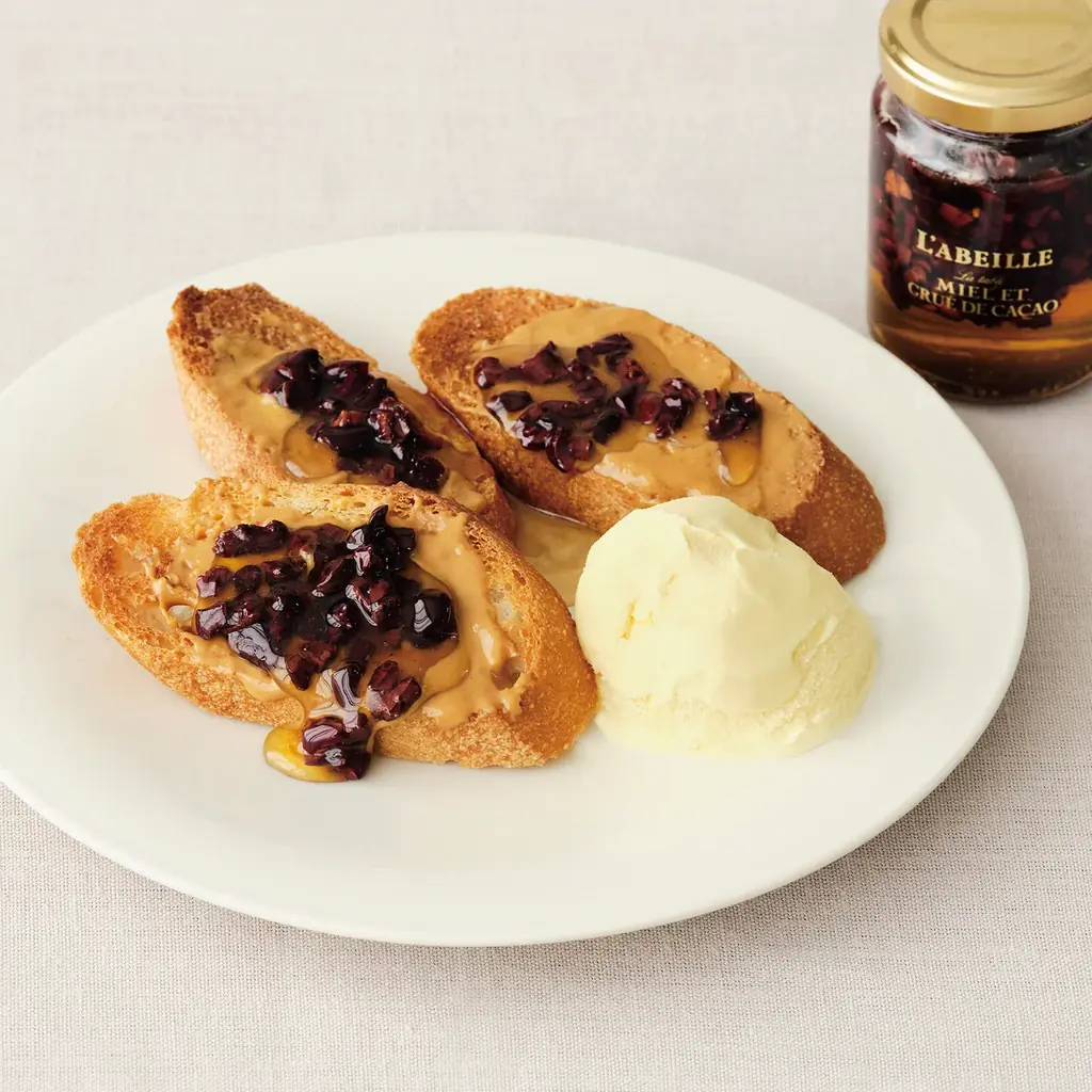 - はちみつカカオニブ:110g 1,944円(税込)、通年販売。カカオニブのほろ苦さとアカシアはちみつのやさしい甘みの組合せで、アイスやトーストに合う。