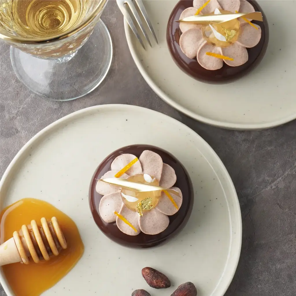 - ムース ショコラ ミード オランジュ:886円(税込)、販売期間 2026年1月15日(木)~6月1日(月)。ガーナ産ショコラとミード(はちみつ酒)を使用し、オレンジとアプリコットで酸味を添えたムースショコラ。