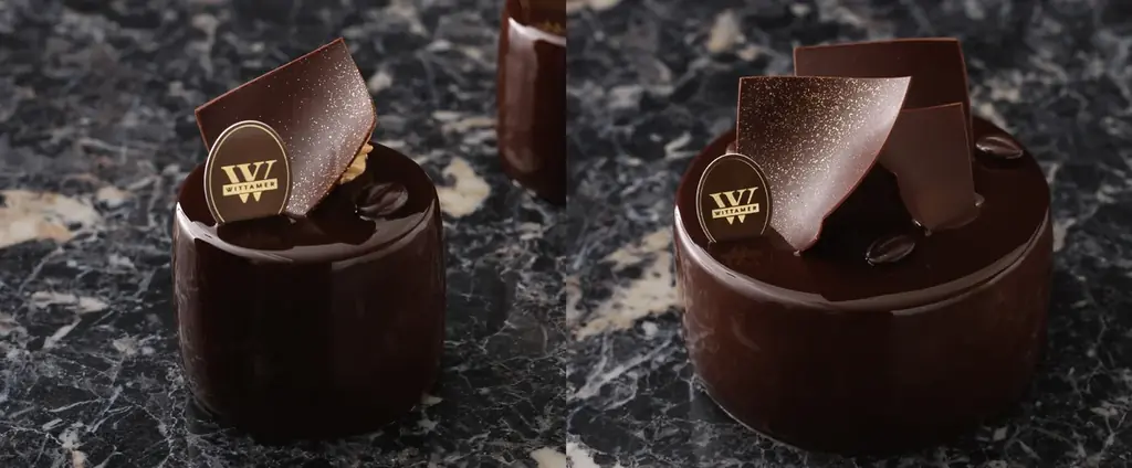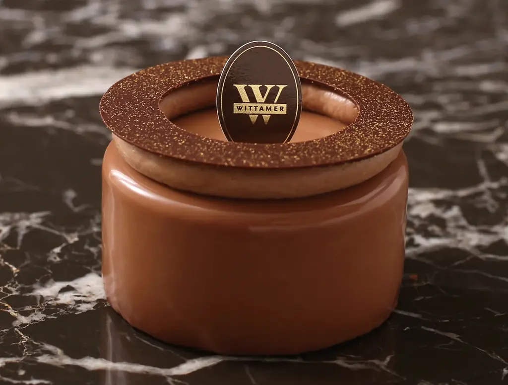 まろやかなミルクチョコレートのムースに、芳醇なラムレーズン入りのクリームブリュレを閉じ込めたケーキです。ラムレーズンの濃厚な風味がミルクチョコレートの甘さを引き締め、やや大人向けの味わいに仕立てられています。