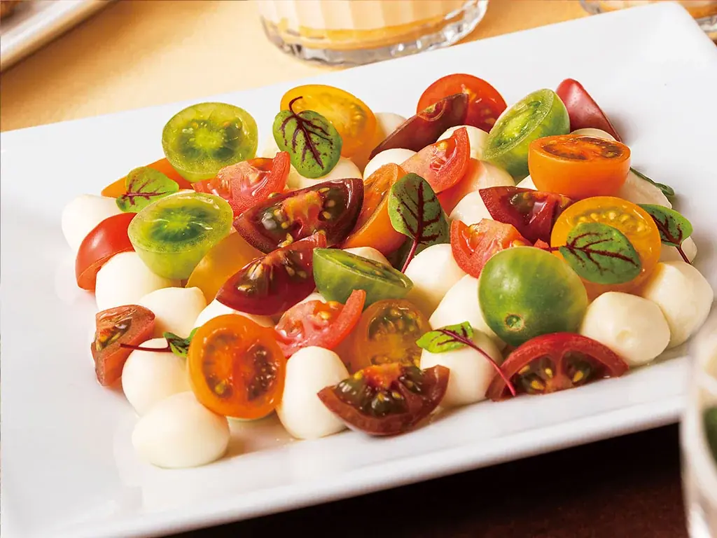 - モッツアレラチーズとカラフルトマトのカプレーゼ