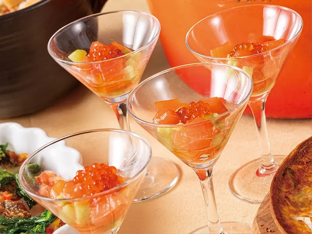 - 生ハムと新鮮野菜のパフェグラス シーザードレッシング