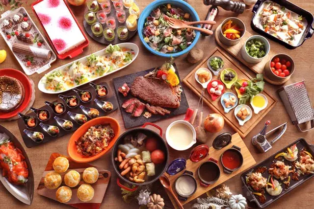 | 主なメニュー | 国産牛肉の鉄板焼き / にぎり寿司(6種) / あったかポトフのシェアフォンデュ / ビーフシチューのパイ包み / 鶏肉とカブラのフリカッセ / 白身魚と白菜のグラタン / チーズタッカルビ / 日替わりパスタ(ポルチーニのクリームソース等) / 豚汁 / 生ハムとほうれん草のシーザーサラダ / えびといかのアラビアータ / 蒸し鶏と水菜の焙煎ナッツソース / マドレーヌ / ガトーショコラ / スイートポテトプリン / ショコラロールケーキ / フロマージュフレーズ 等 |