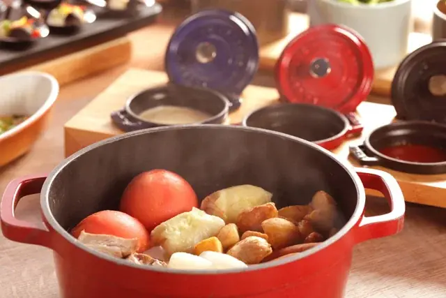 ポトフのシェアフォンデュと温かい皿料理の構成