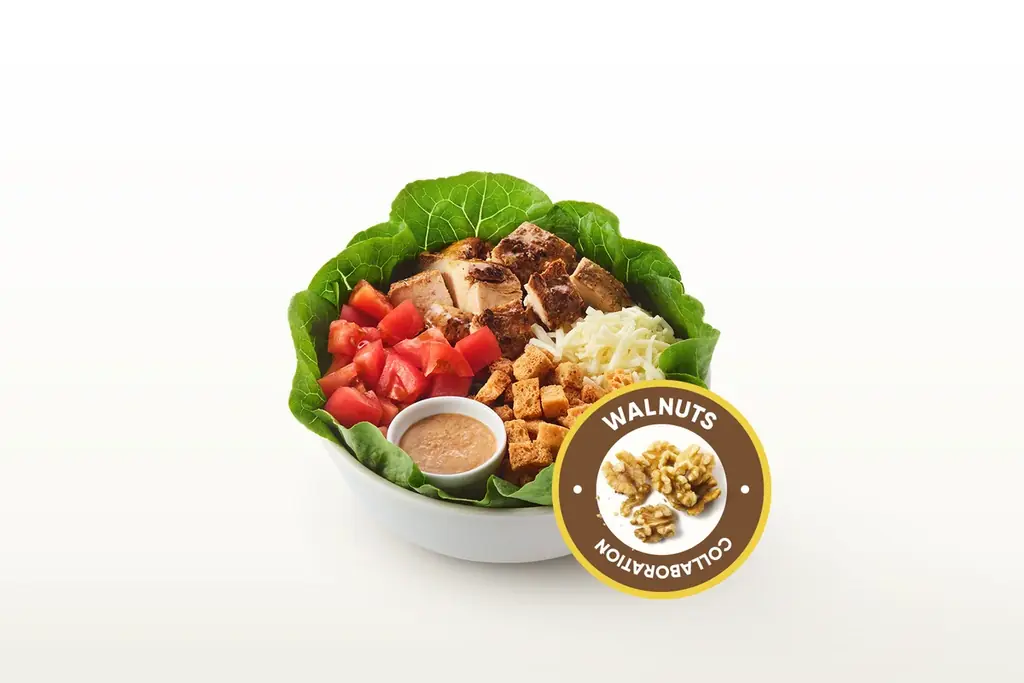 今回のコラボレーション商品は、クリスプの定番サラダである「ワフー・ゴマチキン」と「マーケットサラダ」に、それぞれウォルナッツをトッピングした2種類です。通常よりお得な価格設定で提供され、冬から年始にかけての期間限定メニューとして販売されます。